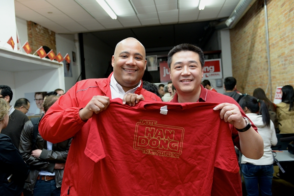 说起自己的英文名字,Han在接受华钓在线记者电话采访时解释说,他并没有改过名字,现在他的英文全名还是董晗鹏的音译。“那为什么在你竞选时,你的竞选传单上都印着Han Dong呢?”面对华钓记者的提问,Han谈起了他在刚刚移民加拿大时的那段经历。