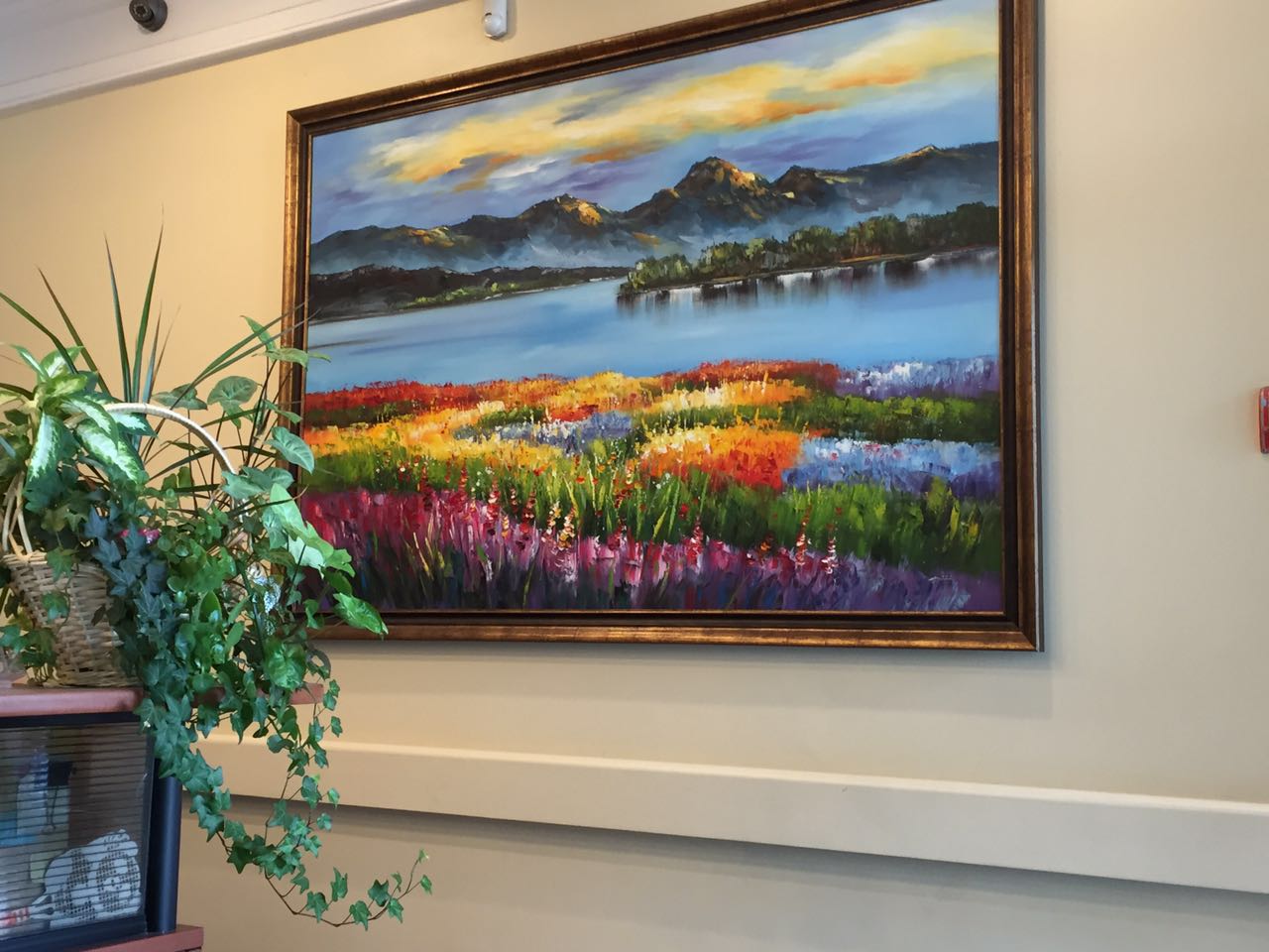 大鹏地产会客厅墙上挂着这幅油画有山有水,水里应该也有想象中的鲈鱼吧