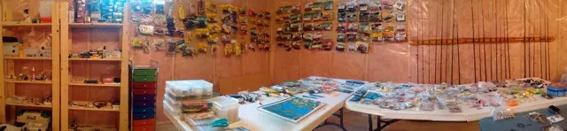 在Michael Hu的家中,有一个属于他自己的空间--渔具工作室。每次大赛前,他都要在这个渔具工作室做长时间的准备工作,其步骤有二:第一步要研究比赛湖的Paper Map,上面有详细的水纹图,他会根据不同季节找出比赛湖的不同标点;第二步是在GPS把这些标点记下来,给探钓做好准备。而赛前精细的探钓,又会给他制定比赛计划提供更精确的选择,如采用什么样的钓组,将会钓哪些标点,赶到具体标点的时间等等。