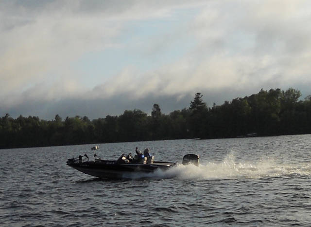 6月22日早上出船后,我们首先到达一个岛尖。那里有一片4尺水深的砂石底,不远处就有6尺左右的草线,草不密但非常新鲜。麦克胡指着砂石底上一窝一窝的断树堆告诉我,这里是鲈鱼春天产卵的地方,大的鲈鱼应该就在附近草线周围保护鱼苗。