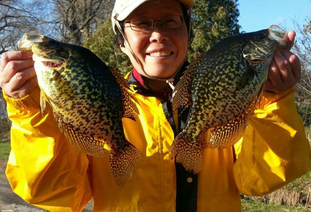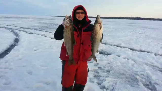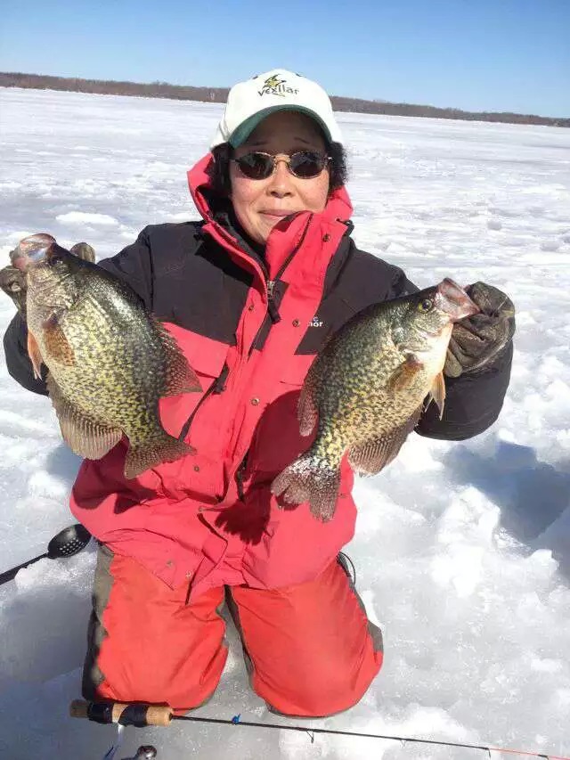 【华钓在线】记者木子报道/多伦多钓鱼圈里活跃着这么一位女士:夏天在水上辛勤的挥洒双臂;冬天在冰上仔细的挑动手腕;夏天潇洒的挂着船东奔西走;冬天乐呵呵的挂着ATV南来北去。她就是Eva Louie(雷)女士。说到雷女士可能大家很陌生,但是要是提起 “花神Eva”,估计大家早已耳熟能详。