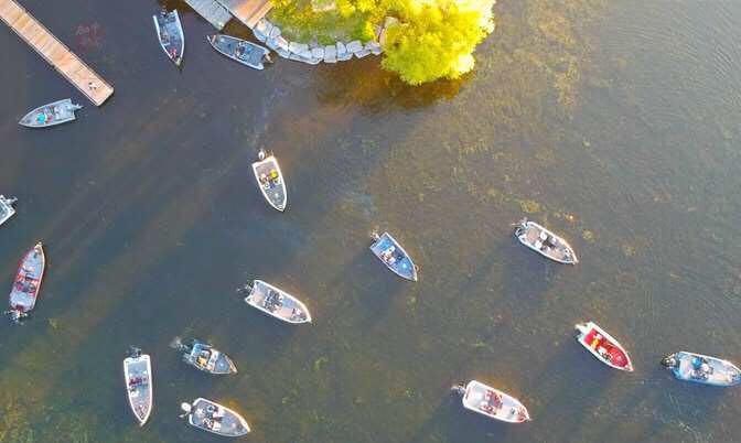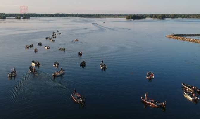 特别值得一提的是,作为本次比赛的冠名赞助商,碧水钓鱼的股东之一的著名钓手Jasper Zhang前一天刚刚完成在伊利湖的职业B1大赛,连夜一宿未眠驱车赶到昆特湾参赛并承担了本次比赛的发令船任务。奏完国歌,所有参赛船按照船号一字排开驶向已经在河道中心等候的发令船。