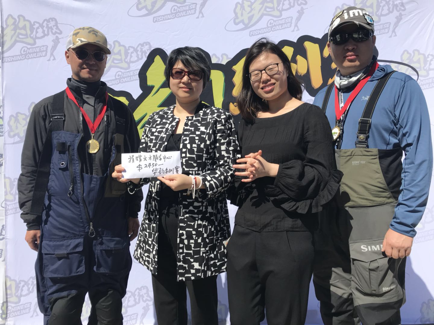 随后是隆重的颁奖仪式,Dong Ye和Karl Wu代表华钓系列赛执委会向获奖船队颁发华钓慈善赛奖杯,向奖获钓手颁发华钓慈善赛纪念奖牌。在所有参赛钓手戴上华钓慈善赛纪念奖牌,并在华钓系列赛媒体墙前拍照留念时,每个人的脸上都带着真爱和满意的笑容。