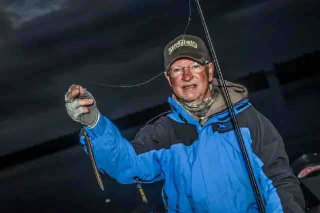 老将Stacey Bass Pro Shops Stik-O Worm and a Zoom Magnum Ultravibe Speed Worm,主要是铅笔状的塑料大长虫,他所钓的环境也是一片片独立的荷叶,他也试过使用相同的软饵钓shell bed,但收获并不太理想。