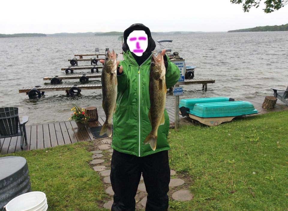 跑题了跑题了,接着说。计划再次泡汤。看来是还要等一等了。终于到了快1点钟,看一眼天气。不!下!雨!了!赶紧收拾东西,搬上船开钓。天气这时候还是给点力的,风速也降了下来,我这个心里美滋滋啊美滋滋。保险起见,主人还是给了我们pontoon,怕小船不稳,他也不放心。(多好的人啊!)两个人出发!直奔第一个钓点!