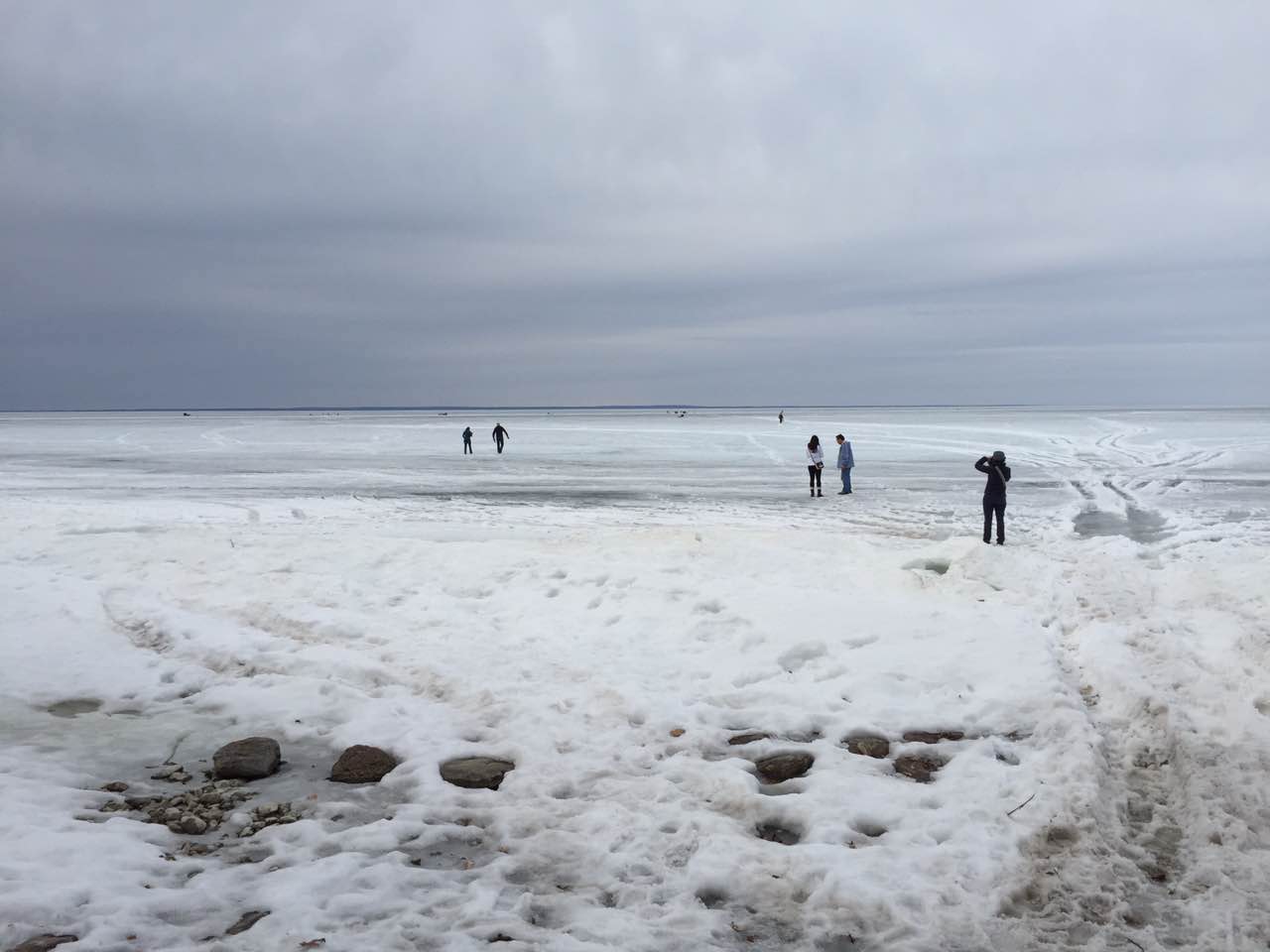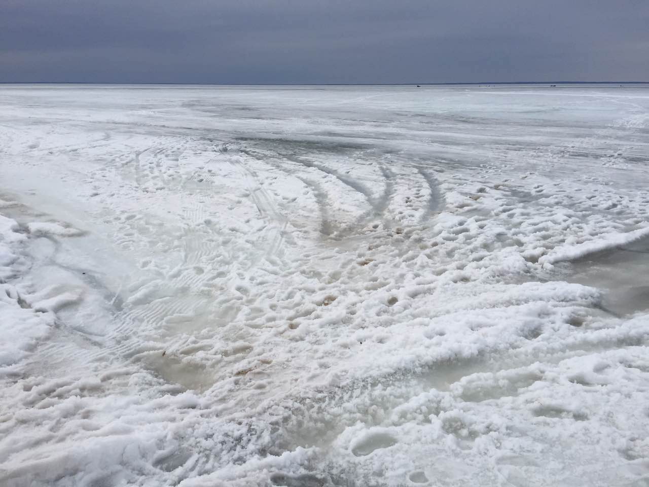 【华钓在线】记者大雷报道/4月3日,华钓在线记者到Lake Simcoe考察冰面实况。在下午3点多到达Sibbald point provincial Park时,气温大概零上10度。往岸边走的时候,记者遇到几个刚从湖上返回岸边的冰钓爱好者。经打听,湖面上的冰还是较厚,约有大概2尺厚,他们收获了些黄鲈(yellow perch)。虽然冰还有2尺深,但能明显看到表面有几厘米的融水。准备在复活节长周末出钓的朋友,一定要加倍小心,安全第一。