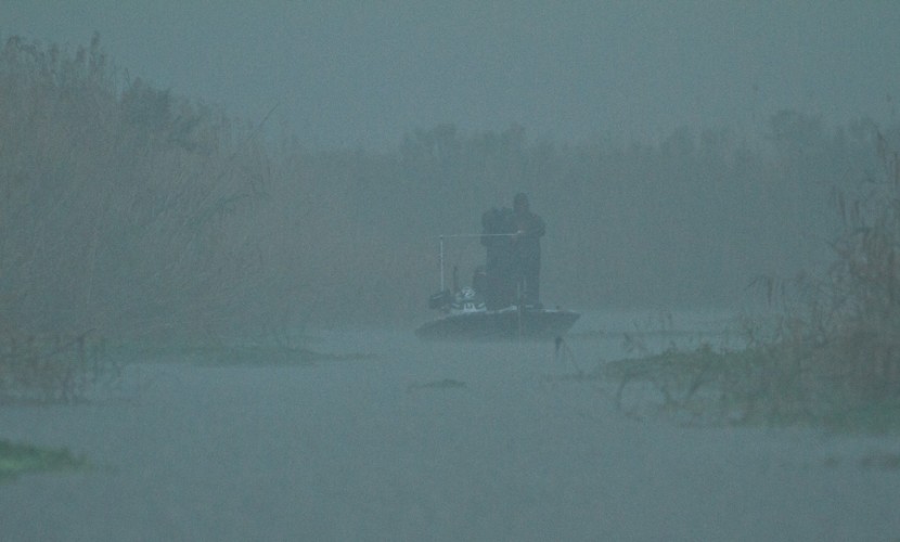【华钓在线】记者大雷报道/2015 Bassmaster Elite Series第一站Sabine River第三天比赛,早上的时候没有了像前两天的大雾,比赛没有延误,53位钓手7:10准时发船了。