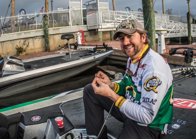 同样来自北卡州的Matt Arey,他今天钓到14-14,与拥有相同重量的阿拉巴马州钓手 Scott Canterbury并列排在第三位。