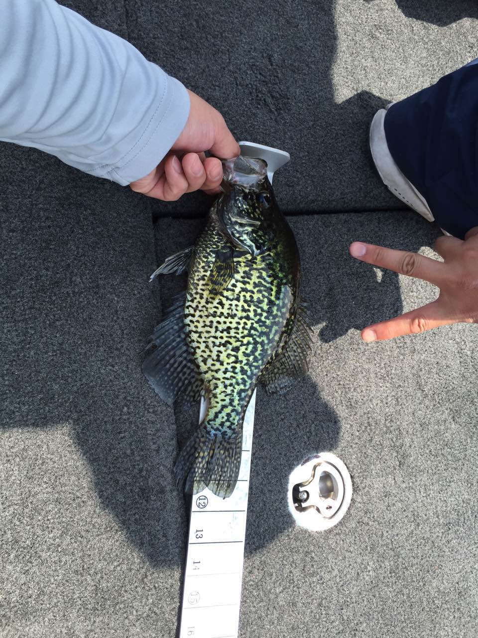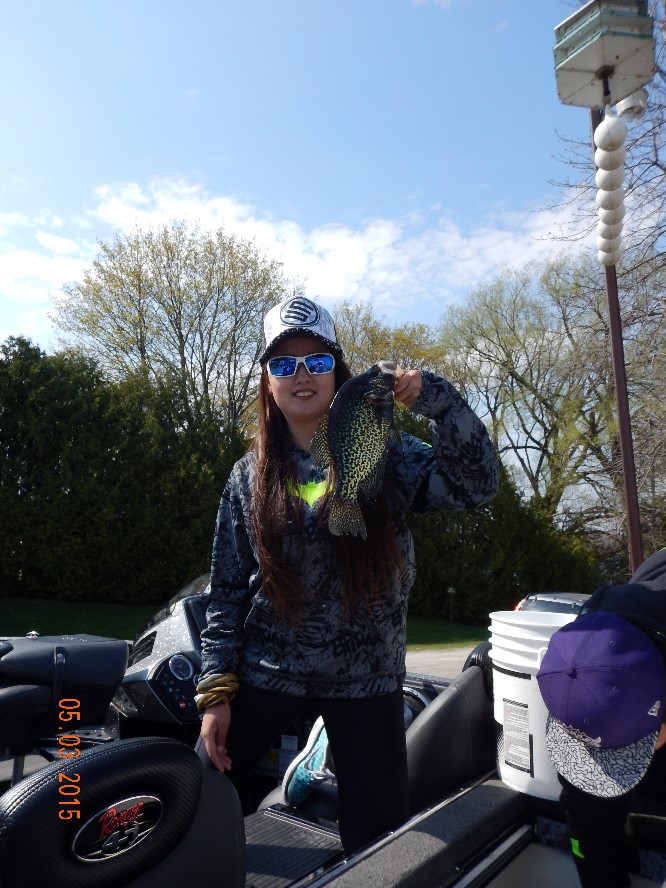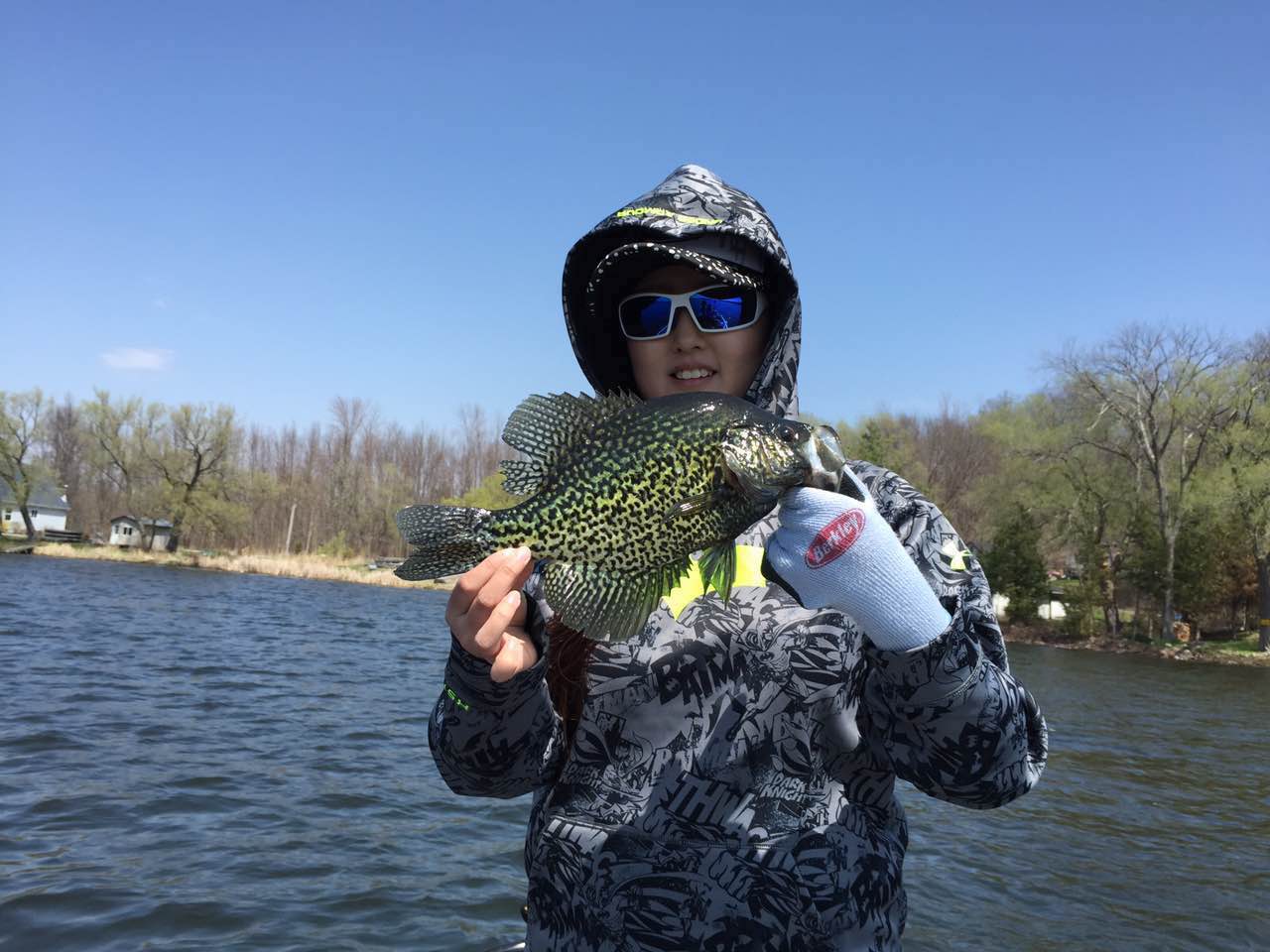 1点半左右,当强劲的西风横穿大Bay之际,鱼情突变,无论是花册还是太阳鱼,都对我们的各种饵表现出各种无视。最后Rig船队、Jasper船队、Jody船队决定转移阵地,向一直在南岸小Bay作钓的Jack船队靠拢。“于是飞快的bassboat带我们来了新的钓点,天不绝人!第一杆下去一条将近十三的花册便把我的漂闷了下去我用力一拉轮子刹车发出滋滋滋的声音!那一瞬间我就觉得整个世界都美好了!”新人小瑜兴奋地回顾着,“拉鱼的感觉真的太完美了!可能前期放了太多baby花册的原因、一大波巨型12+的花册向我们涌来一杆接一杆一条接一条,指那打哪打哪有鱼!完全就是爽到了一种境界!”