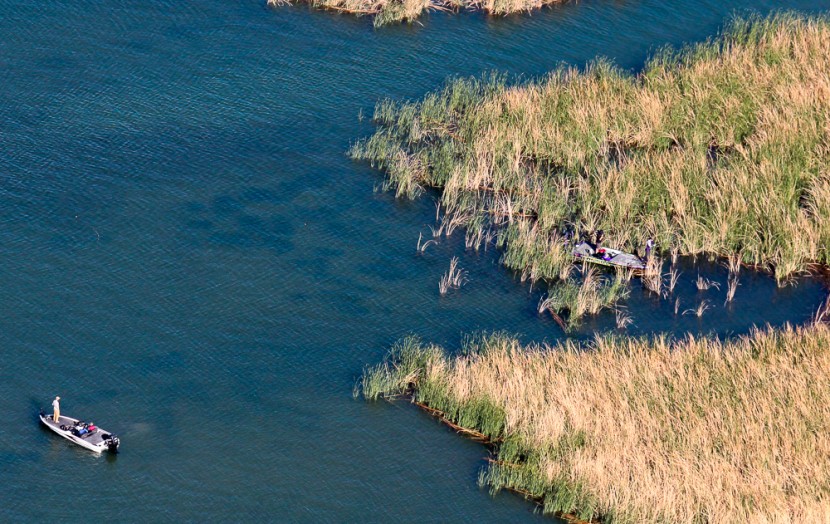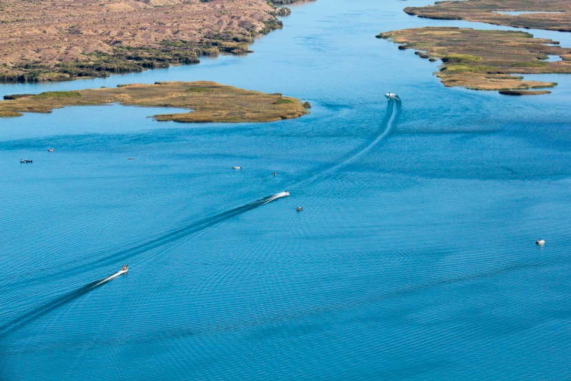 【华钓在线】记者千山报道/历时四天被称为“大峡谷之战”的鲈鱼大师精英赛第四战,5月10日在美国西部的亚利桑那州(Arizona)的哈瓦苏湖(Lake Havasu)落下帷幕。老将Aaron Martens以总重量68-9磅夺得冠军,不但赢得10万美元奖金,同时还获得参加2016年鲈鱼大师经典赛的资格。决赛日,B.A.S.S为渲染气氛,特意配发一组摄影记者Shaye Baker俯拍哈瓦苏湖和鸟瞰精英赛决战的系列照片。