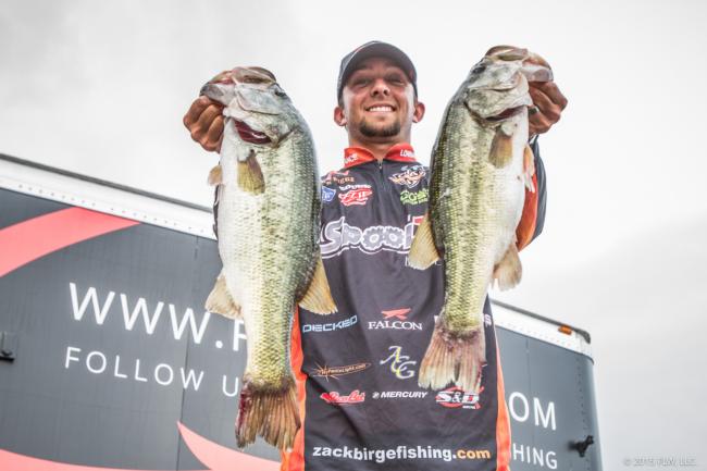 奥克拉河马州年轻钓手Zack Birge今天5条鱼重15-9,他两天总成绩35-6磅排在第5位。