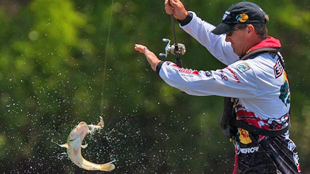 很多钓手会被他们的flipping钓组所困,认为一定要坚持在浅滩上下跳动饵来搜索。但是除非你看到了鲈鱼,或者有口但是抓不住的,否则就换上一个复合亮片快搜吧。
