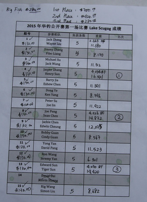 除了大鱼奖外,Edward和Terry还夺得首场比赛的第三名。该船队也是华钓历史第一个赢得两张支票的参赛者。