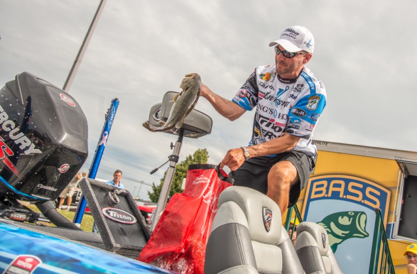 整个比赛,Randy Howell都关注着目标鱼的食物链,尤其是新增多很多小黄鲈鱼苗,它们沿着水下植被漂流而下,进入大湖,吸引着成群小口鲈鱼。本周早些时候Randy Howell在深水作钓,就很成功。他还注意到成群的黄鲈鱼苗通向浅水区域,这个水域让他在最后时刻钓到那条大口鲈鱼。