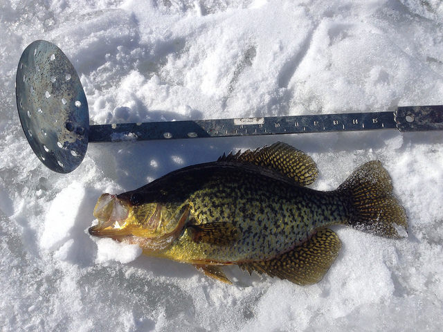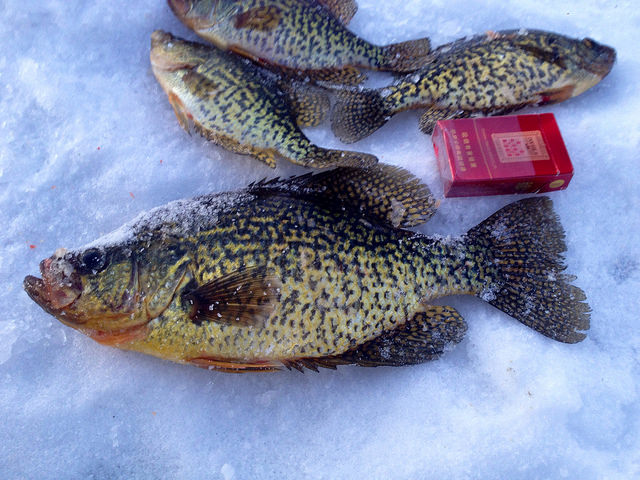 【华钓在线】多伦多钓友圈闻名已久的人送外号的“杨花花”,3月29日在华钓论坛发布“处女帖:冰钓花花最佳时机 ”,虽然只写一个字“testing”,却没忘记展示一下他这两天的鱼获,其中一条花册长达15英寸。