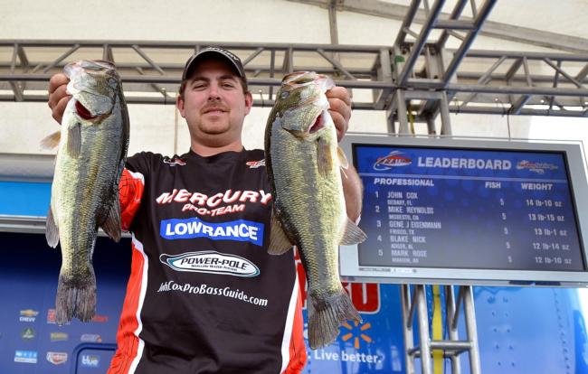 John Cox在FLW第二站比赛中,最终以15条鱼 45磅15盎司的成绩位列第十,并且带走一张$12000的支票。