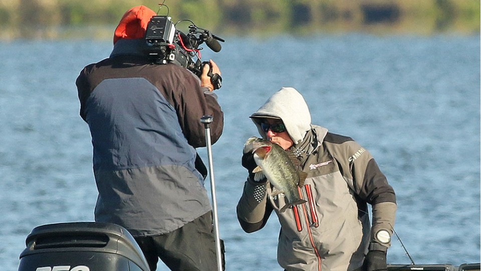 从他的表情看,他知道这条鱼就像鸡血一样,给他的夺冠日注入更令他兴奋更让他渴望的强心剂。成功钓到这条鱼后,Britt Myers对着摄像机向观看现场直播的人展示片刻说,并像钓坛传奇人物Jimmy Houston那样,深情地亲吻了一下这条对他来说绝境是意味深长的鱼获。