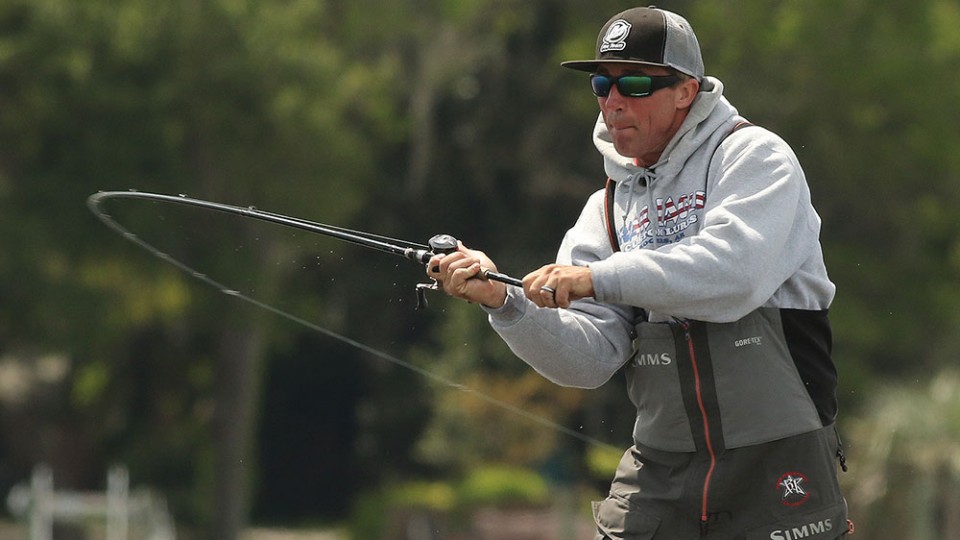 那么,在遭遇突变的冷锋天气,这位名气并不大的钓手又是怎么赢得这场比赛的呢?我们跟随B.A.S.S.的官方摄影师Steve Bowman的现场图片,来窥探一下这位新科冠军决赛日的整个夺冠过程。