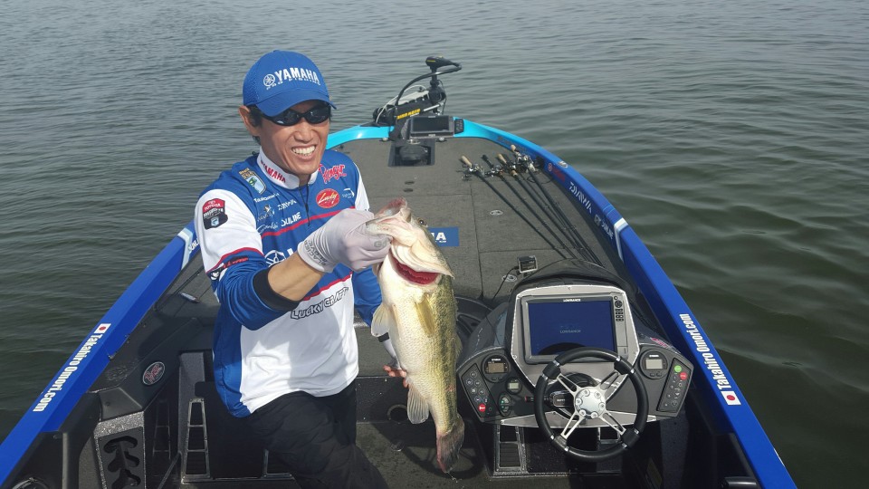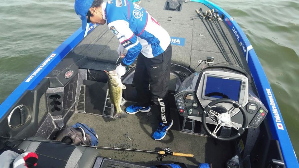 【华钓在线】记者孟亭报道/4月29日,位于阿拉巴马州北部的惠勒湖(Lake Wheeler)上演了一场大逆转的好戏,头一天领跑的前十位钓手有一半马失前蹄,甚至像KVD这样的名将都无法晋级第三天的比赛,而日本著名钓手、曾经赢得鲈鱼大师经典赛冠军的Takahiro Omori则钓获两天比赛的最大鱼袋23-3磅,一下子从“打酱油军团”跃升至第四位,成鲈鱼大师精英系列赛第四站第二天比赛的焦点人物。