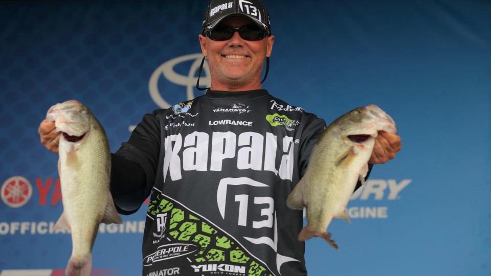做出正确决定后,Randy Howell一上午都钓得很嗨,不久就钓中了这条正好6磅的大鱼。正是这条大鱼让他第二天的鱼获达到18磅11盎司,从而以两天战绩35-2磅排在第三位。