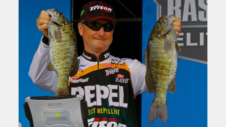 第二天的比赛,除了Takahiro Omori表现抢眼外,另一位来自宾州的钓手、精英系列赛的“大菜鸟”Dave Lefebre则是最大赢家。第一天的比赛他钓了18-12磅名列第三,第二天则一鼓作气钓了当天的第二大袋子--21-3磅,两天总战绩39-15磅,处在遥遥领先的位置。