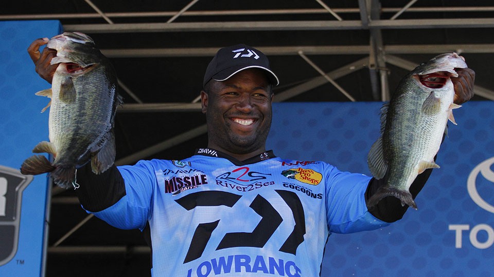 第二天比赛的超级大鱼袋是知名钓手Ish Monroe钓到的,24磅10盎司也让他的成绩由头一天第17位升至第四位。赛后快人快语的Ish Monroe毫无保留地说道,他喜欢钓什么毫无秘密可言,他喜欢钓frog和flip,这些鱼获都是这两种钓法钓获的,他的作钓用饵是Tomm Biffle Jig加上Missile Baits D Bomb Destroyer拖尾。