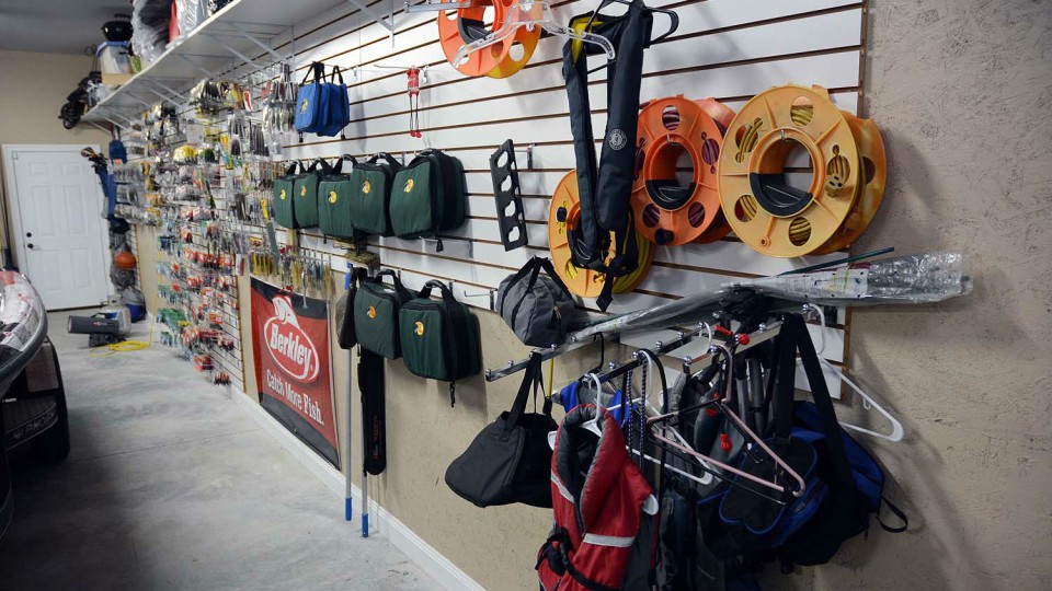 搬到甘特斯维尔湖后,Lucas和他的太太BreeAnna便建造了这座2200英尺的住宅。住宅一分为二,一半是太太的天下,另一半则是Lucas的车库工作间了。这个不同寻常的钓手工作房,肯定让很多猎鲈钓手羡慕嫉妒恨。