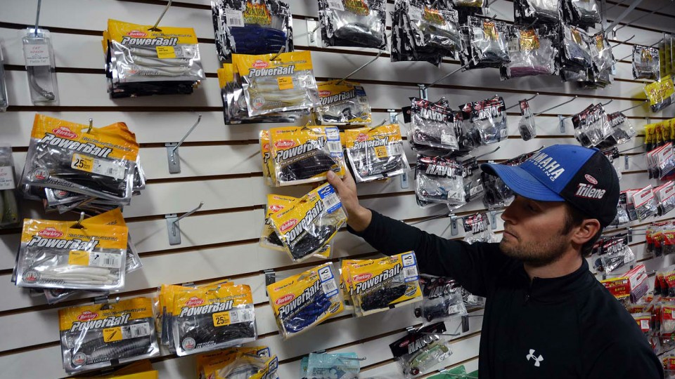 Berkley钓饵是Lucas的主要赞助商之一。Berkley PowerBait和Havoc软饵每年都会推出不同形状的新饵,都会在第一时间邮寄到Lucas家中,接着就会被他摆放到墙上。