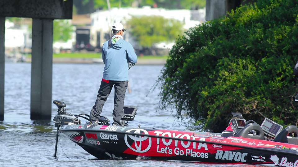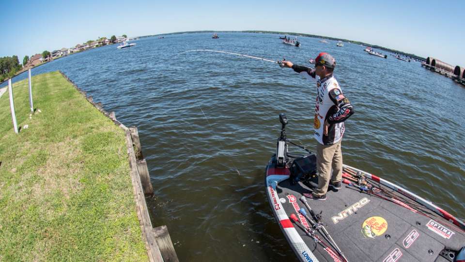 第二个看点是康罗湖上游,参赛钓手需要全速飞奔半小时,才能抵达上游的FM 1375大桥,第一天比赛名列第三的Cliff Crochet还会选择这个类似路易安那州的作钓环境。第三个看点是风平浪静的湖面,会是更多钓手满湖飞奔的原因,尤其是在太阳出来后,预计鱼情将会完成有别于第一天。