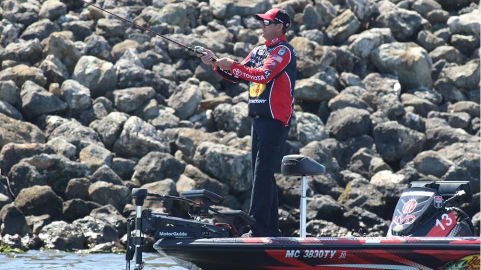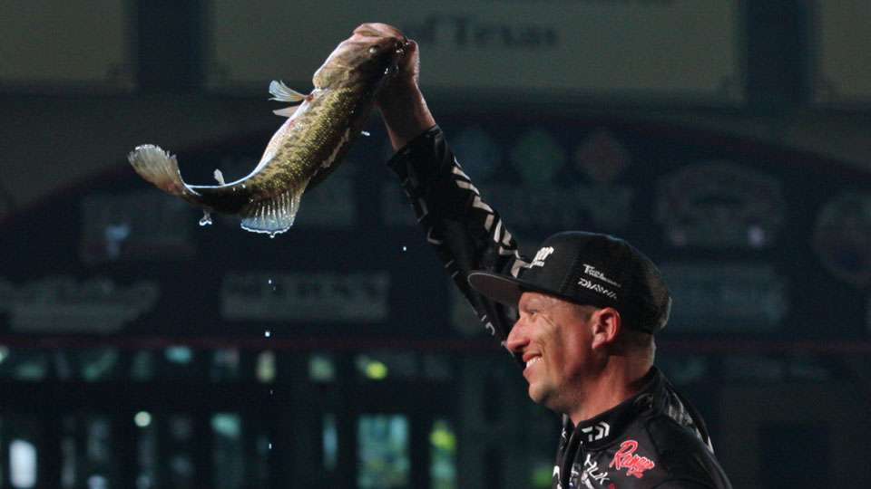 第二天比赛只进行一个小时后,即时跟踪现场的BASSTrakk便显示,Edwin Evers已经有20磅重的鱼获入箱,成为第47届鲈鱼大师经典赛的新领跑者。在第一天钓了18-3磅、名列第13位之后,这位卫冕冠军便表示,对这个结果感到满意,“我真的感觉不错,虽然我有机会再多钓几磅,但我对今天的成绩很满意。周六的重量应该有所上升,尤其是风平浪静,你能钓得更好些。”