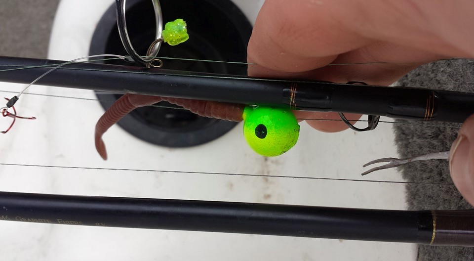 3、通常用1/2– ¾盎司带铅坠头的钩加4寸塑料蚯蚓;
