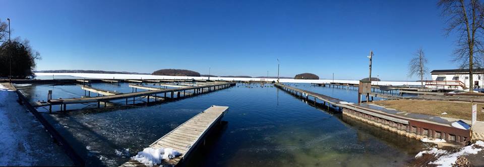 在听到有钓友落水消息后,华钓在线记者给Harris Boat Works打去电话询问米湖冰情。该码头负责人Jay Harris告诉记者,米湖岸边已都是积水,虽然几十米开外的地方还有很多冰,但冰厚已极其脆弱。