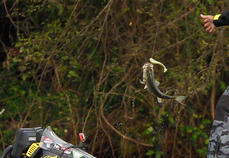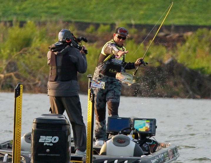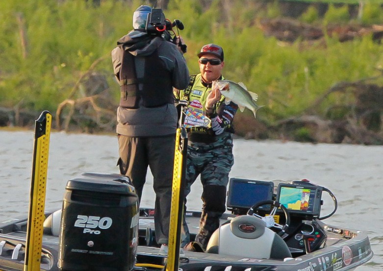 早上到达钓点后,Skeet Reese继续使用7寸的Basstrix Swimbait。