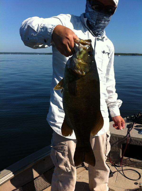 在过去的2014赛季,我本已经金盆洗手,马放南山,但禁不住Peter的盛情邀请和比赛出发时百舸争流的壮观景象的诱惑,与Peter搭档参加了加拿大职业赛Bassmania米湖站的比赛。在Peter的带领下,战胜了众多职业高手,拿到了第五名的好成绩。