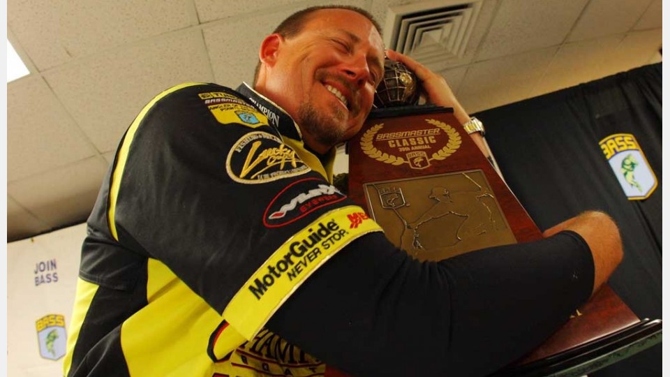 2001年在路易斯安那州Louisiana Delta进行的经典赛,已经在过去10年有精彩表现的Kevin Vandam终于登上了鲈鱼大师的巅峰。如果说在他的职业生涯头10年中有一个阿喀琉斯脚踝,那就是在已经多次杀进经典赛前10名后,还没有捧起一个经典赛冠军奖杯,这也是KVD当时遭到很多批评的原因。然而,这一切的一切都在2001年烟消云散了,他已跻身于最伟大的钓手行列。