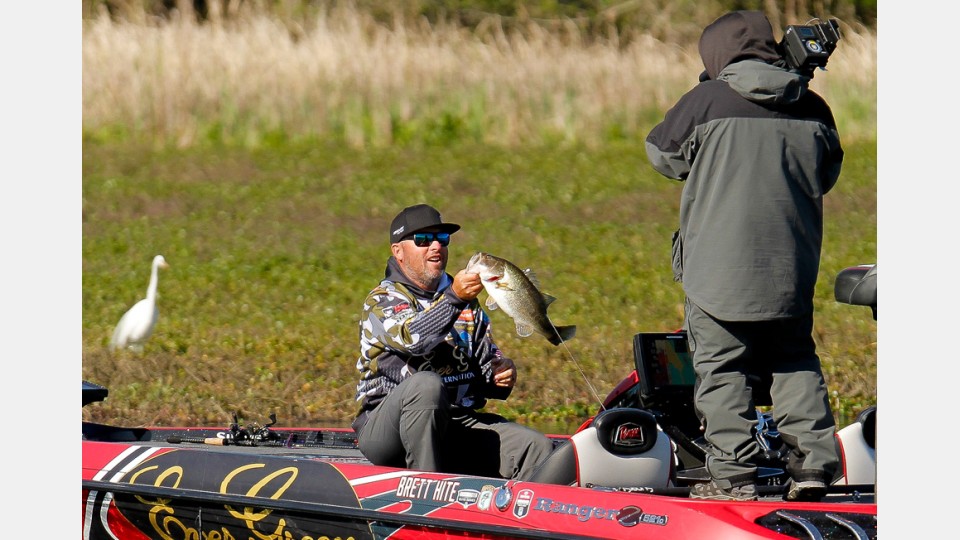 应该说周六的半决赛是排名前三位的钓手所展开的一场明争暗斗,B.A.S.S.的直播镜头也不停地在三者之间进行切换。最后,来自亚利桑那州的Brett Hite,再次从他的头两天作钓标点成功钓获18磅称重鱼,并以总重量50-2磅跃居第一,将在参加决赛日的12强中率先发船,有望夺得他的职业生涯中第二场精英赛事冠军。