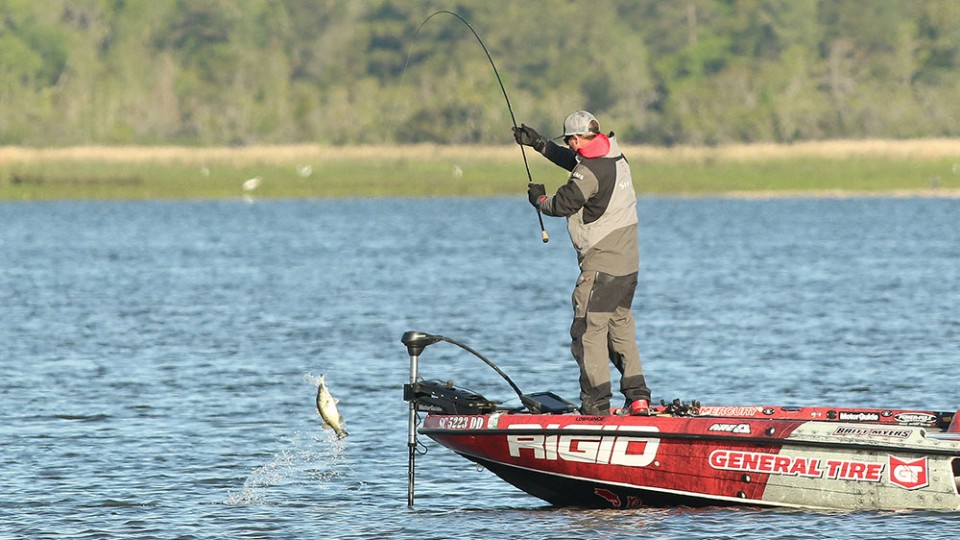 【华钓在线】记者孟亭报道/4月9日,鲈鱼大师精英赛新赛季第二站第三天的比赛在南卡罗来纳州东部的温约湾水系展开了51强半决赛,尽管一天前因钓点之争在网上引起一片争论,但周六的比赛过程和结果,又把人们的关注目光聚集到竞技钓鱼比赛的原点,毕竟天人和一、人鱼对话才是顶级竞钓赛事的魅力所在。