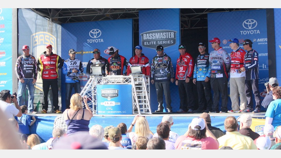 第三天比赛结束后,从成绩看,排在前三位的Brett Hite、Kelly Jordon和Britt Meyers的鱼获总重量相差只有3磅多,处于最有希望夺冠的位置。而排在第四位以后的钓手都在40磅以下,想到弥补至少近10磅的差距,难度系数极高,虽然不能排除有人钓获大鱼袋的可能,但只要前三位钓手钓出三天来的平均成绩,更有希望捧起新赛季第二座冠军奖杯。