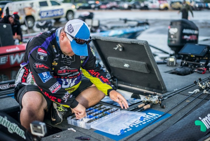 Brandon Lester还介绍说,惠勒湖站的比赛钓饵和钓技最为关键,因此他从众多钓组中选定两种,一种是swimbait钓组,因为四月份钓田纳西河水系,swimbait都是必不可少的,当大鲈沉底待产时,它们只对shad这种饵鱼感兴趣。另一种就是flipping jig钓组,田纳西河水系尤其是惠勒湖有众多“树丛”,鱼情也相当不错,每年都能从“树丛”中钓到大物,只要你选对Jig和拖尾软饵,就有希望像Randall Tharp一周前所做的那样,在两湖之战的艰难条件下赢得冠军。