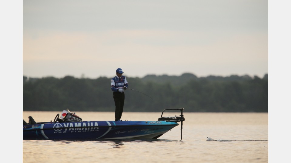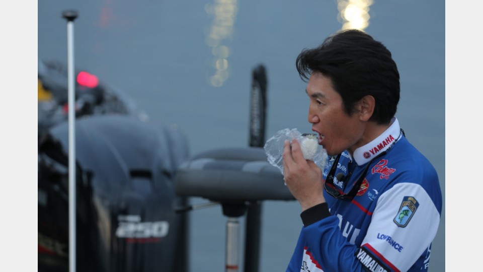 当Takahiro Omori以倒数第二位出现在称重台前时,他一手握着一面日本国旗,一手从鱼舱里拎出一条5磅多的称重鱼,信心十足地展示给现场观众。五条称重鱼25-3磅,四天总重量达到81-6磅,当天最大鱼5-15磅--这个完全可以写进惠勒湖赛事历史的最佳成绩,赢得了阿拉巴马州“河畔之城”迪凯特(Decatur)现场观众最热烈的掌声。