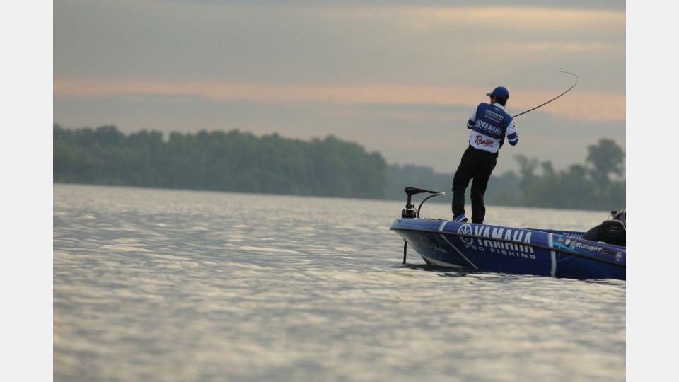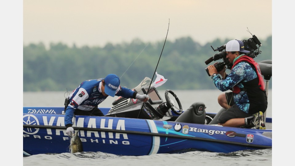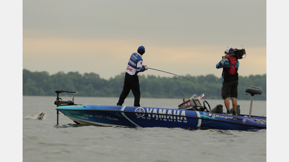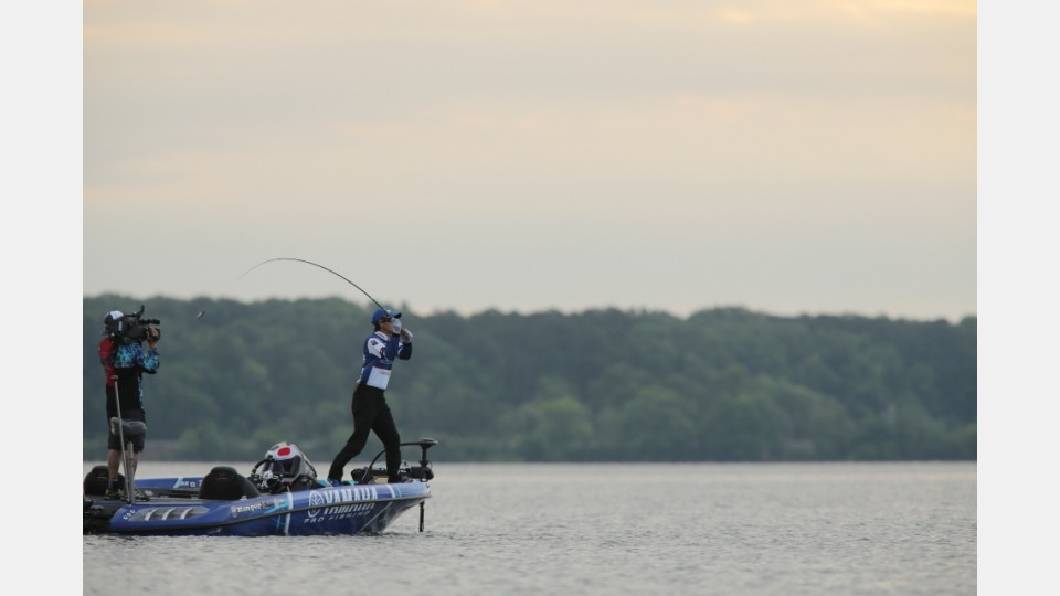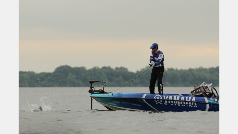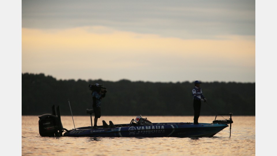 据Takahiro Omori透露,在星期一试钓时,他在这个标点有数个大咬口,但他没有把它们钓上来,而是轻轻抖掉,其中一条至少约在6磅以上。B.A.S.S.官方介绍说,Takahiro Omori的所有鱼获都是早上第一时间钓到的,但随后他又能不断地更换鱼获。他所使用的主打钓饵是水面系walk-the-dog style topwater,还有5英寸的swimbait,间或也会用一下Carolina-rigged worm。