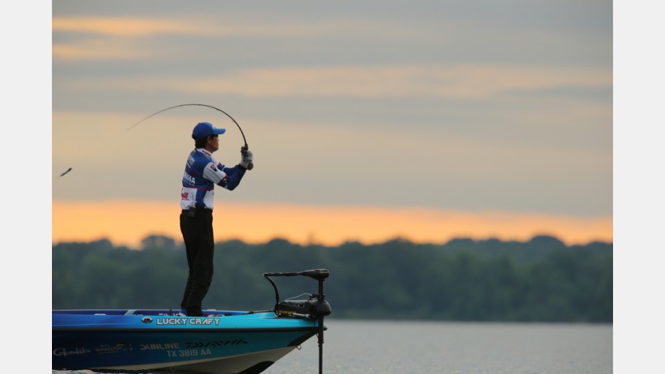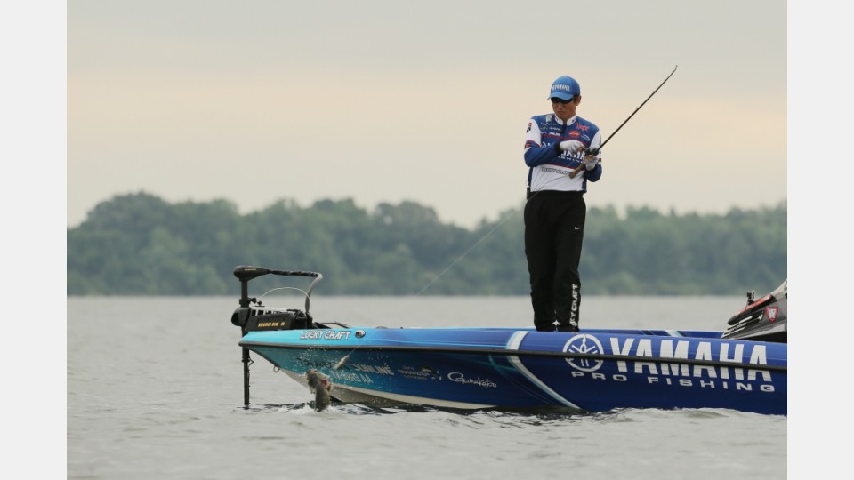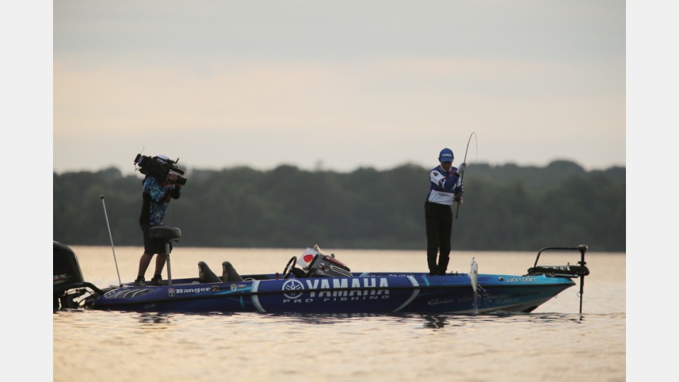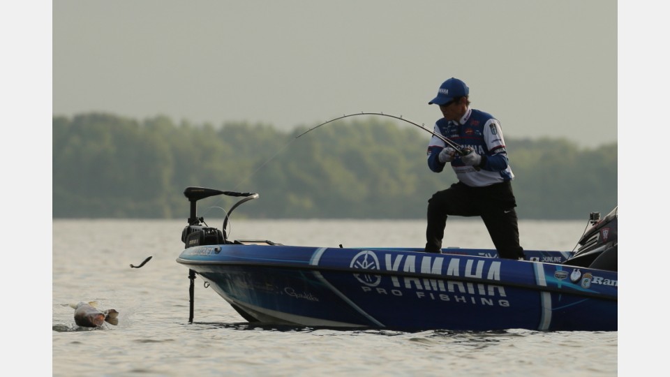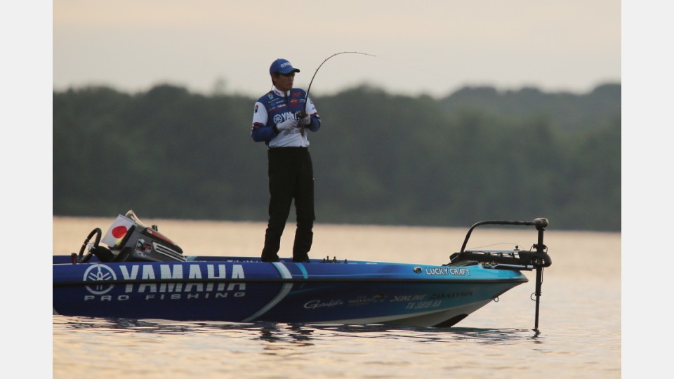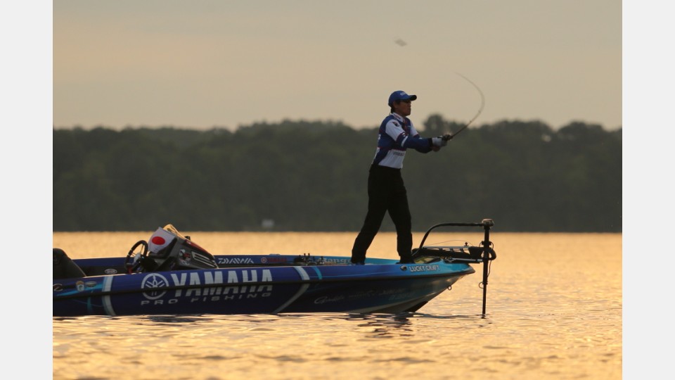 【华钓在线】记者孟亭报道/第一天只钓到10-7磅鱼获,名列“酱油区”第72位;第二天钓获23-3磅,完成不可能完成的大逆转,晋升第四位;第三天又一鼓作气交出22-9磅的大袋子,排名第二,杀进星期天决赛日--这是日本著名钓手Takahiro Omori(大森贵洋)在鲈鱼大师精英系列赛第四站惠勒湖(Lake Wheeler)头三天的惊人表现,那么他能在决赛日实现反超,再次捧起一座冠军奖杯么?