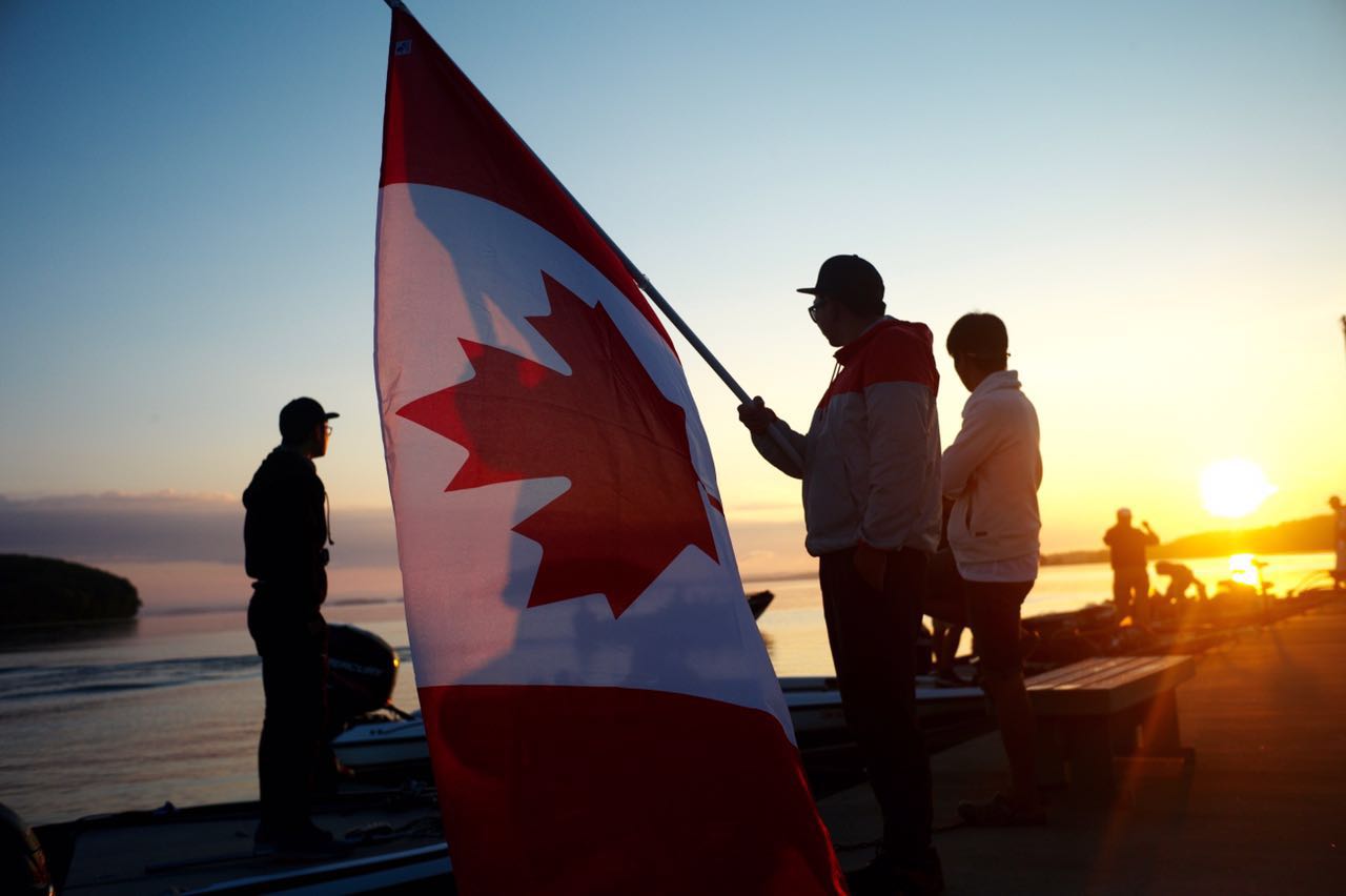 6点40分,当所有参赛钓手在下船码头一字排开,一面加拿大国旗随着日出升起时,平静的米湖湖畔奏响了加拿大国歌。凝视国旗,近60位已经移居加拿大的华人感受着“神佑我土,自由荣光!啊,加拿大,我们为您站岗”这个庄严时刻。