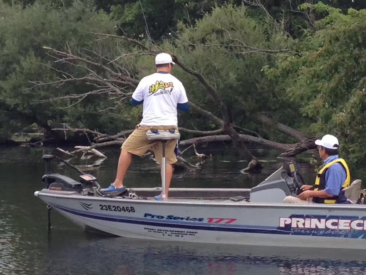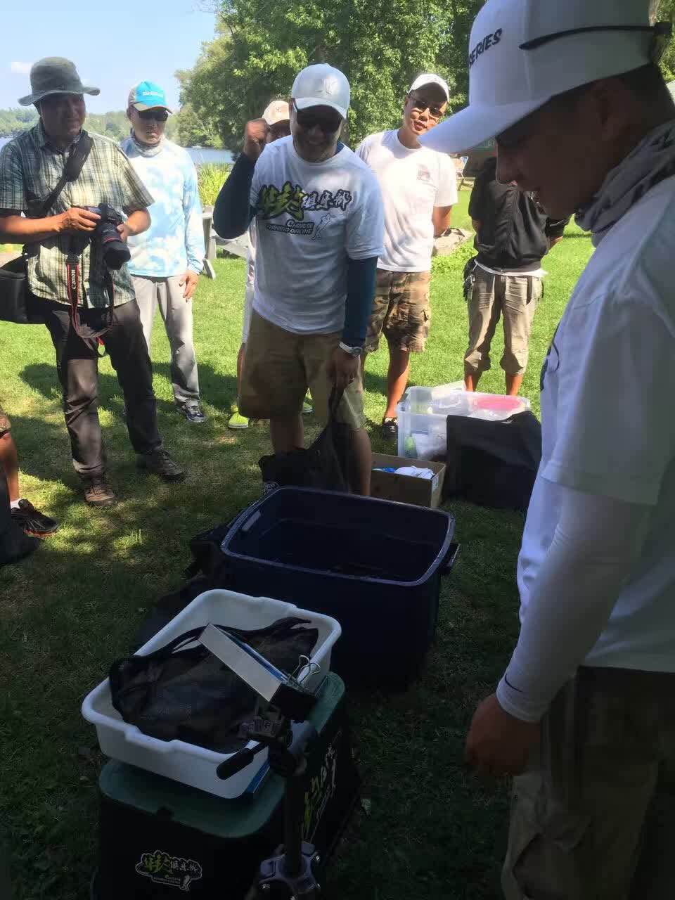 正是在这样的极具挑战的大背景下,8月18日一大早,代表着海外华人最高竞钓水平的华钓系列赛25位船长,开始云集在米湖中部的Gores Landing,同时到达的还有20多位由记者、摄影爱好者和志愿者组成的比赛监督团。在本场比赛冠名赞助商碧水钓鱼(Pro J)老板之一阿波的带领下,赛前所有程序都流畅展开,签到、交参赛费、领取饮料、下船,每个环节都有条不紊。