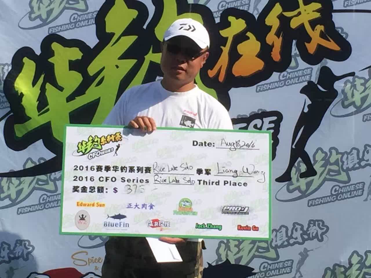 最后,已经参加本赛季四场比赛的董晗鹏以16磅7盎司夺得冠军,同时他的单尾最大鱼以5磅14盎司夺得第一大鱼奖。其实,董晗鹏交出这样亮丽的成绩单早在意料之中。据华钓系列赛负责人向媒体透露,Han早在一周前试钓时就钓了近18磅的鱼获,随后便胸有成竹地报了名,这场比赛对他来说确实是志在必得。董晗鹏在领奖时表示,他会把这场比赛获得的$1375奖金全部捐给他的选区慈善机构。
