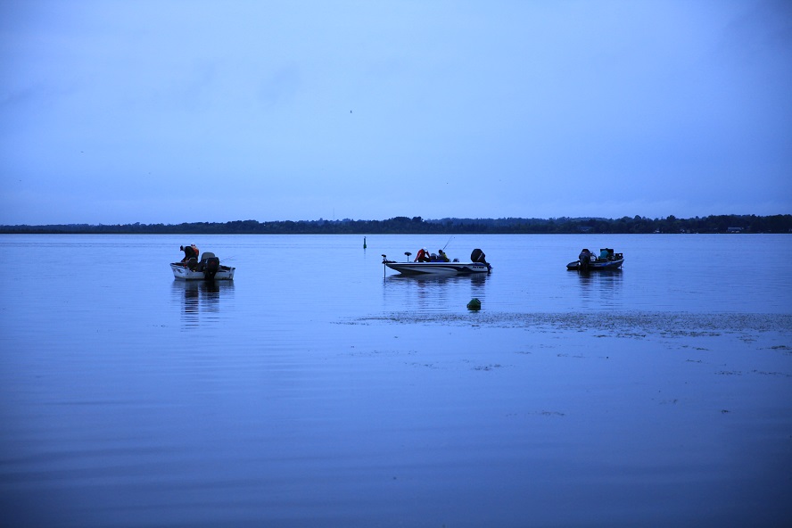 六点刚过,当第一批参赛船队赶到鲟鱼湖的The Morning Marina时,迎接他们的不是大风大浪和大雨,而是平静得如同一面黑墨色镜子的湖面。见此情景,负责收参赛费的钓手Song Wu一下车就高声说道:“天气预报太不靠谱了!明明是风平浪静,愣说成大风大浪电闪雷鸣,这不成心吓唬胆小的么?!”