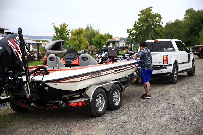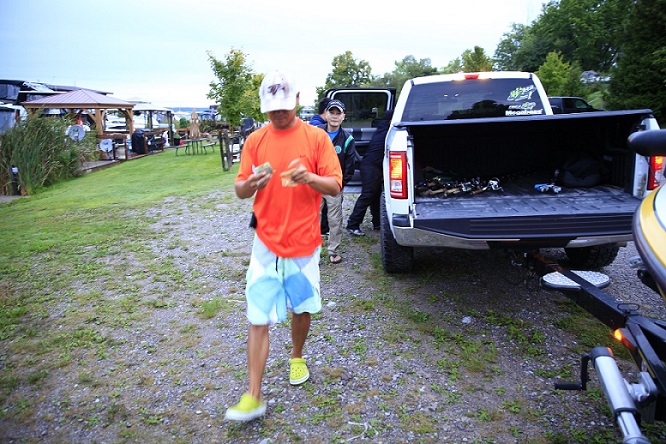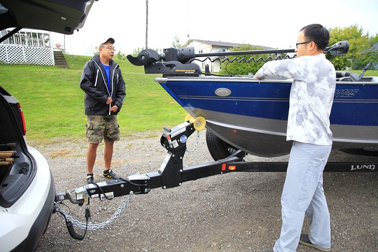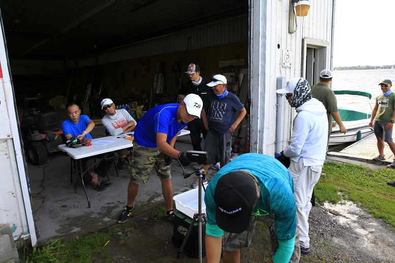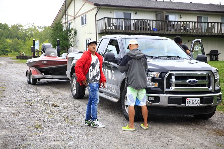七点前,几乎所有参赛船队都提前集结在下船码头。本赛季第一次参加华钓系列赛的Michael Zhai和Yuanping Guo,David Pang和Yan Yong赶来了,这两个船队也被视为这场比赛的两匹大黑马,都曾在Sturgeon Lake钓出过好成绩。Karl Wu和Liang Wang船队赶来了,曾在米湖单人赛夺得季军的钓手Liang Wang告诉华钓记者,“我很少来鲟鱼湖,但Karl船长对这里非常熟悉,我们今天的目标不高,重在参与。”