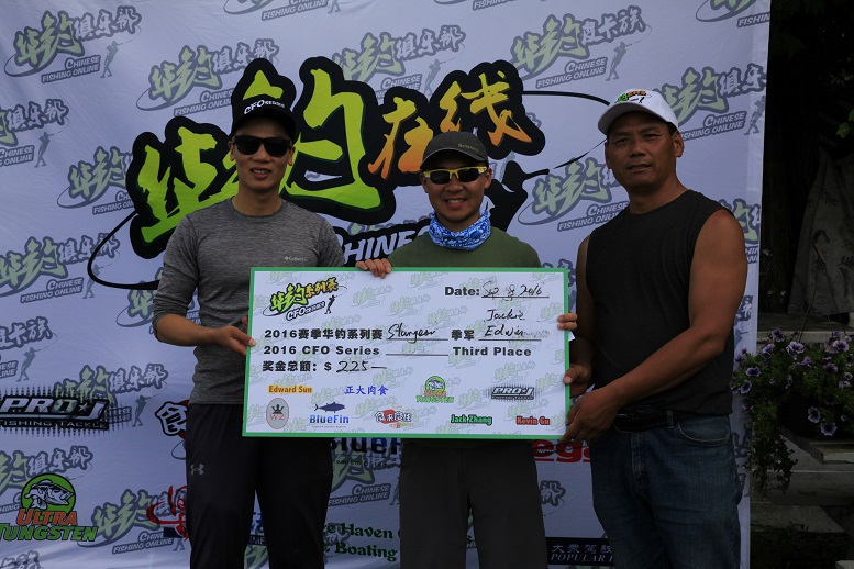 获得第三名的是Jackie Chen和Edwin Cheung船队,成绩为12磅8盎司。这两位CBC钓手已连续两个赛季都有非常稳定的表现,如果Jackie没有缺席第一场比赛,那么现在他仍会是年度最佳钓手的争夺者之一,上个赛季他仅以一分之差与AOY失之交臂。赛后,曾在上个赛季夺得BOQ比赛冠军的Jackie表示,虽然失去夺AOY的机会,但仍会全力以赴,争取在第一届华钓经典赛有更好的表现。