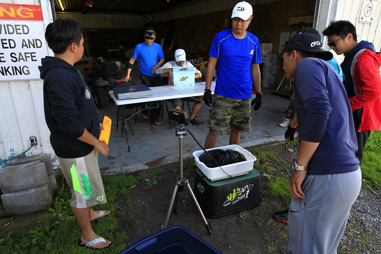 八小时的比赛时间转瞬即逝。下午三点半,当所有参赛船队返回码头时,正赶上20多公里大西风横穿鲟鱼湖。The Morning Marina老板破例允许参赛船队驶进停放游艇的避风码头,并把码头的修船库房打开,为最后的称重仪式提供场地。一返回码头,有关钓手Han Dong又钓到一条大鱼的消息就传开了。最终成绩也是如此:Han Dong和Yenan Zhao船队不但交出15磅9盎司的鱼获,再次夺得冠军,而且Han钓到的一尾6磅13盎司的大口鲈鱼,也再一次夺得第一大鱼奖。