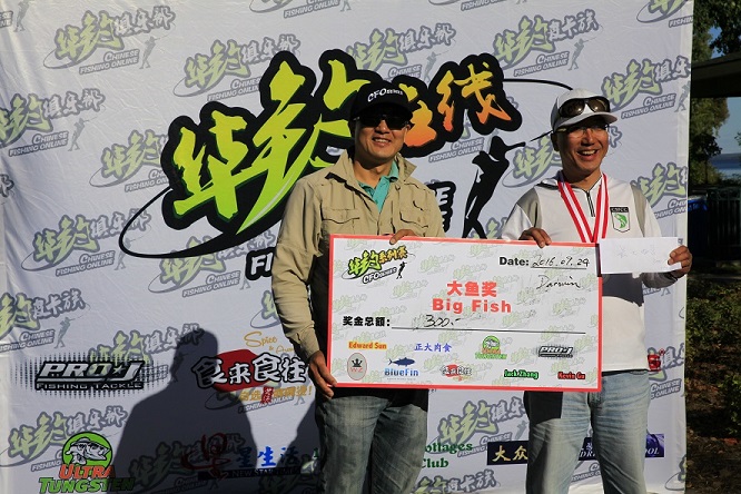 本场比赛的第五名由Ron Wang和Kirby Du夺得,他们的成绩为16.82磅。值得一提的,这也是Ron和Kriby第一次搭档,而第一次搭档就交出这样出色的成绩,赢得参赛钓手们的称赞。排名第六的Barry Jia和Albert Chen,交出了15.56磅的鱼获,虽然未能获奖,但95分的积分也让Barry在AOY排名榜上稳居第四。
